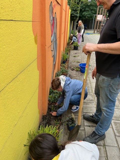 Met veel plezier hebben de leerlingen van groep 7/8 deze week geholpen om ons schoolplein weer een stukje groener te maken. Dankzij de opbrengsten van Ede Doet konden we nieuwe planten aanschaffen, en samen met ouders en collega’s hebben de kinderen het plein voller kleur gegeven.