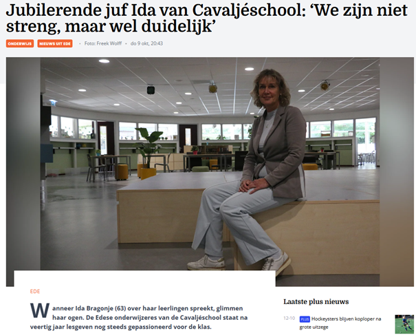 Het zal jullie vast niet ontgaan zijn — in Ede Stad Online stond onlangs een mooi artikel over onze juf Ida, die in november 40 jaar in het onderwijs werkt!