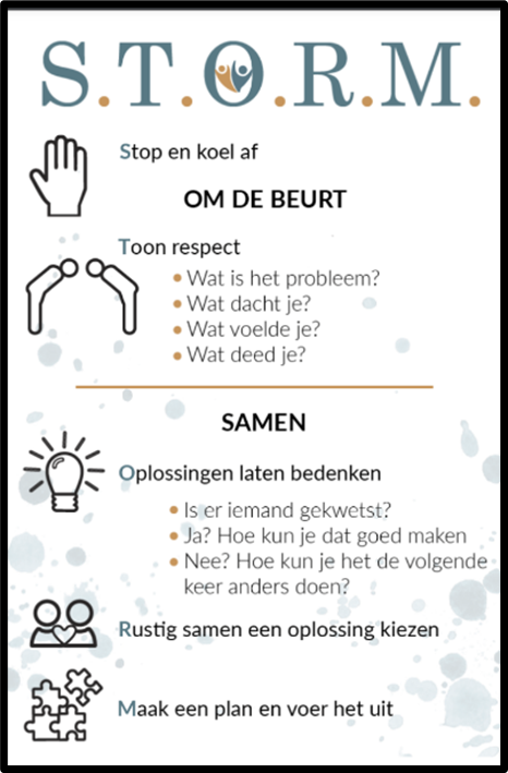 Het STORM kaartje is een hulpmiddel om kinderen te leren stapsgewijs een conflict op te lossen. Hoe werkt het?